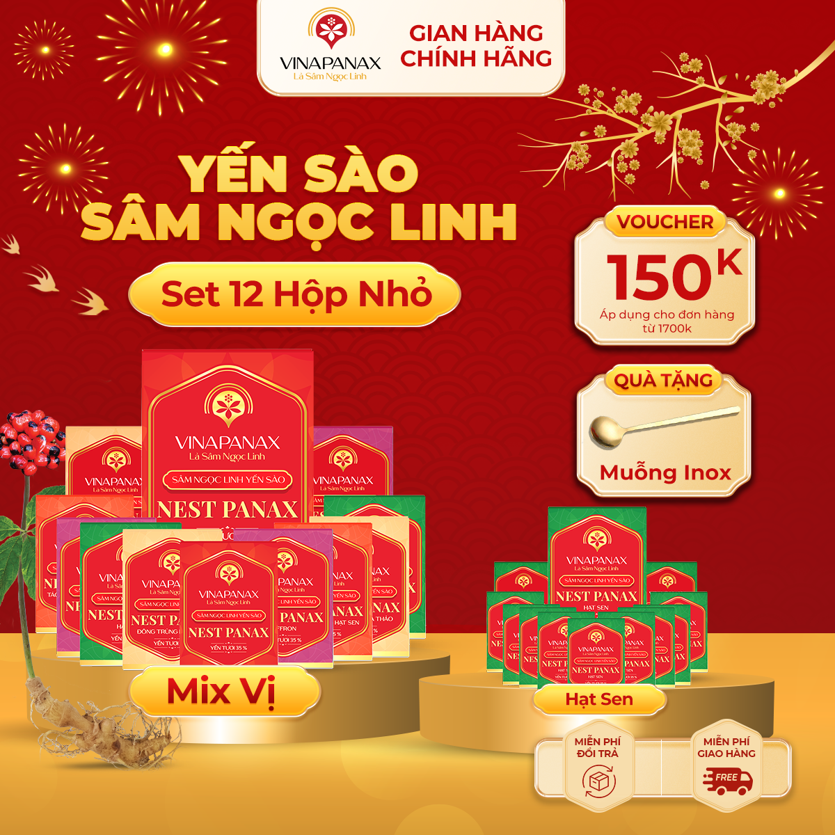 • Miến phí đổi trả & hoàn hàng.