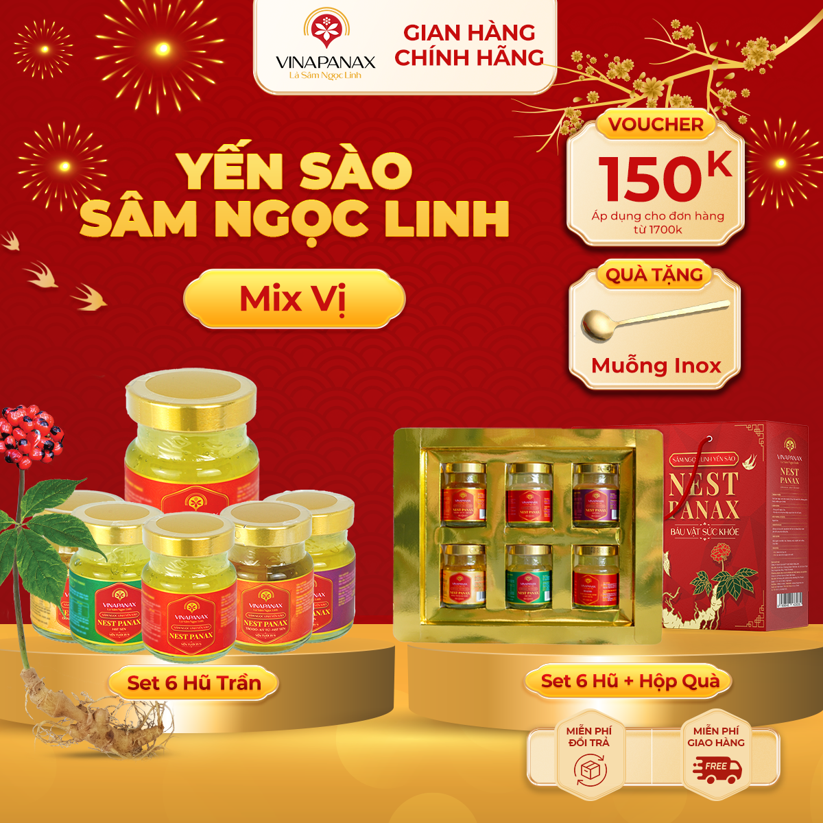 • Miến phí đổi trả & hoàn hàng.